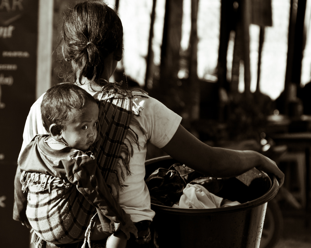 Réaction. Intervention. Chocolats blanc et noir se séparent. Je propose un siège à ma consoeur d’infortune. Elle décline l’invitation. Avec un bébé dans le dos… J’approuve vigoureusement. Nous rions de la situation. L’autobus bondé, notre équilibre précaire, nos bébés qui talonnent, emportés par l’ivresse de l’engin qui redémarre. Etrangères aux yeux du monde, unies de fait par deux mains qui s’agrippent et deux vies en miroir.