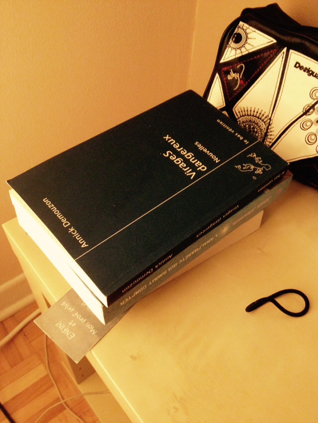 1) Pile de livres lus ou à lire sur la table de chevet.