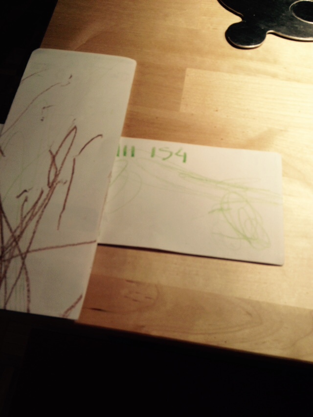 2) Depuis que je suis mère, les stylos ont disparu en hauteur, bien cachés à l’abri des petites mains. Seuls traînent sur la table d’inoffensifs crayons gras. « Vous avez de quoi noter votre numéro de dossier? ». Pas de problème…