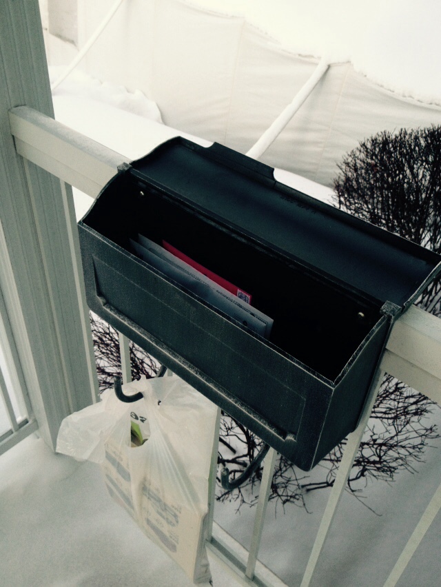3) On s’est enfin décidé à déneiger les escaliers et voilà : le facteur a bien voulu déposer notre courrier dans la boîte. Sur certains, il avait griffonné « neige », preuve que tant que le chemin n’était pas visible, notre brave facteur ne comptait pas traverser notre terrain à l’aveuglette pour déposer nos missives.