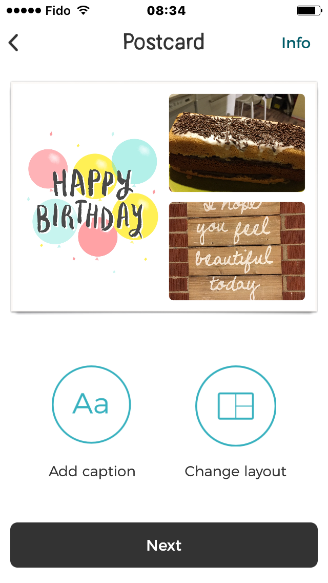 – Des photos personnalisées et un beau rendu final selon ma meilleure amie à qui j’ai envoyé la carte postale suivante