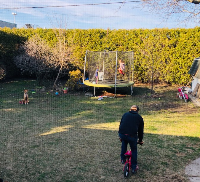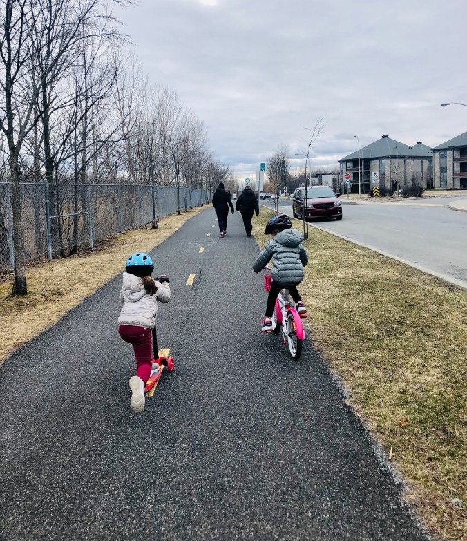 – J’ai beaucoup marché. Je conduis B. au camp de tennis à pied, je sors les chiens trois fois par jour, on rejoint les amis au parc, etc. Alors que Tempête sautillait devant moi sur le chemin du retour, après avoir déposé sa soeur au tennis, la réalité m’a sauté aux yeux : il fut un temps – et ce temps reviendra – où l’on jetait nos enfants au devant de tout, du camp, de l’école, de la garderie, de la playdate chez les amis. Jamais à l’heure, toujours en vitesse. Cela fait quelques mois que je n’ai plus vécu cette sensation, et elle ne me manque pas!